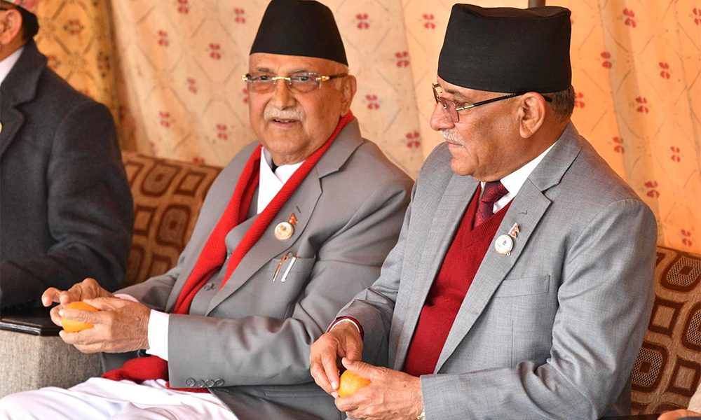 यसअघि हिजो (बुधबार) पनि ओली र प्रचण्ड एकै ठाउँमा देखिएका थिए । प्रतिनिधिसभाका ज्येष्ठ सदस्य पशुपति शम्सेर जबराको शपथग्रहण समारोहमा ओली र प्रचण्डबीच शितल निवासमा भेट भएको थियो । त्यहाँ पनि ओली र प्रचण्डले भलाकुसरी गरेका थिए ।