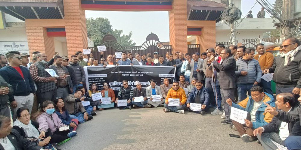 रुपन्देहीमा क्रियाशील व्यावसायिक संघसंस्थाहरूले नेपाल राष्ट्र बैँक अगाडि बैंक तथा वित्तीय संस्थाको ज्यादतीबिरुद्ध धर्ना दिँदै व्याजदर एकल विन्दुमा कायम गर, सावा र व्याजदर भुक्तानी अवधि बढाउ, पर्यटन व्यवसायिलाइ विस्थापित होइन स्थापित गर, चालू पुँजीकर्जा निर्देशिका २०७९ खारेज, लिलाम बिक्री खारेज गर, उद्योग व्यवसाय गर्ने वातावरण कायम गरलगायतका नारा लगाउँदै विरोध जनाएका थिए ।