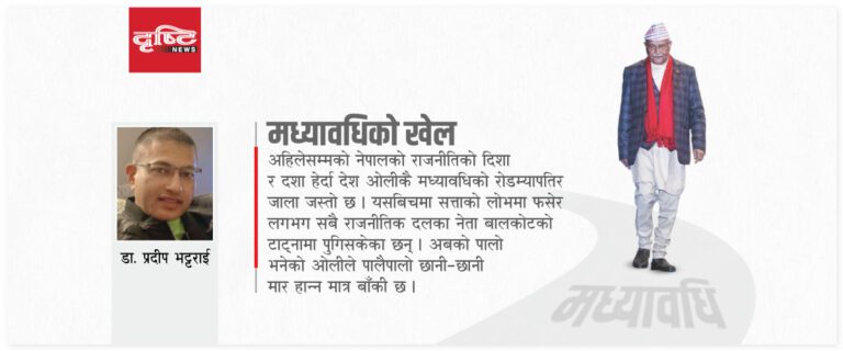अब प्रश्न उठ्छ, अबको नेपालको राजनीति कता जाला ? अहिलेसम्मको खेल हेर्दा नेपाल ओलीकै मध्यावधिको रोडम्यापतिर जाला जस्तो छ । सत्ताको लोभमा फसेर लगभग सबै बालकोटको टाट्नामा पुगिसकेका छन् ।