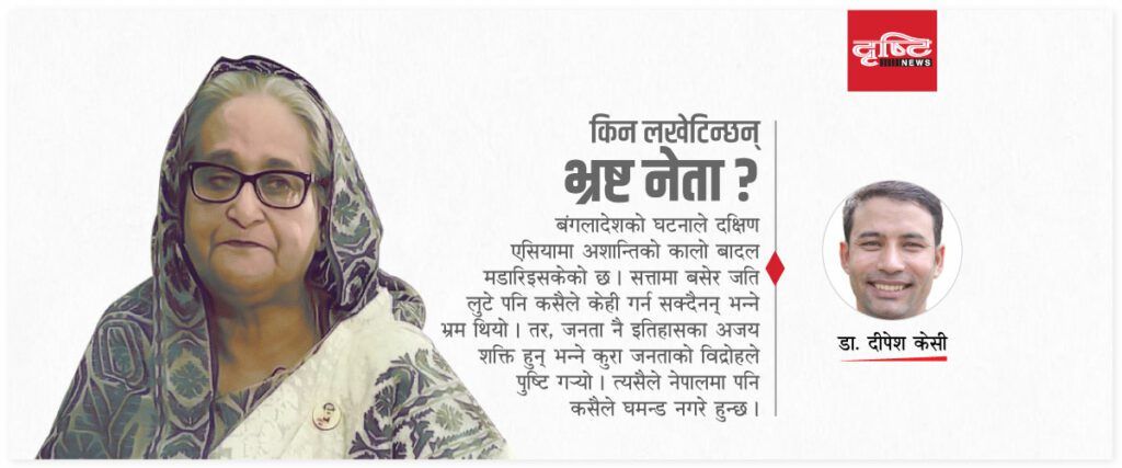 बंगलादेशमा दोहोरो अंकको आर्थिक वृद्धि थियो । विपक्षीलाई दबाएर शासन गरेकी शेख हसिनाले त्यो आर्थिक वृद्धिको जस त लिइन् तर उनीविरुद्ध विद्यार्थीले विद्रोह गरे । सुरक्षा निकायले पनि अन्तिम अवस्थामा साथ दिएन । बंगलादेशको राष्ट्रपिता शेख मुजिबर रहमानकी छोरी हसिनाले देश छाडेर भारतमा शरण लिइन् ।