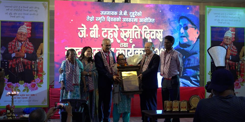 जेबी टुहुरे फाउन्डेसनले आज यहाँ आयोजना गरेको कार्यक्रममा अध्यक्ष दाहालले दिवङ्गत पाख्रिनका पत्नी सुकमायालाई उक्त सम्मान प्रदान गरे । सो सम्मानको राशि रु एक लाख रहेको छ ।