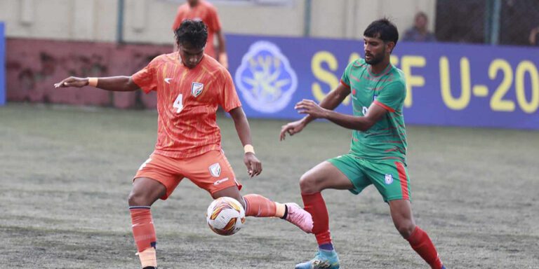 काठमाडौं । साफ यू–२० च्याम्पियनपशिप फुटबल प्रतियोगिताको उपाधिका लागि अहिले नेपाल र बङ्लादेशबीच प्रतिस्पर्धा भइरहेको छ ।