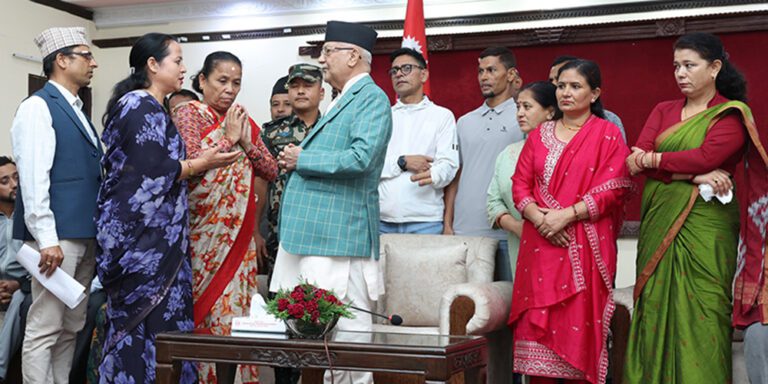काठमाडौं । प्रधानमन्त्री केपी शर्मा ओलीसँग द्वन्द्वपीडित सङ्घले सङ्क्रमणकालीन न्यायसम्बन्धी आयोगमा पदाधिकारी नियुक्ति गठन गर्दा पीडित केन्द्रित भावनालाई समेट्न माग गरेको छ ।