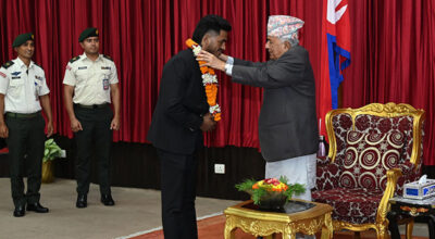 काठमाडौँ । युएईमा भएको आईबा पुरुष विश्व बक्सिङ च्याम्पियनसिपमा ऐतिहासिक कास्य पदक प्राप्त गरेका चन्द्रबहादुर थापासहितको टोलीलाई आज भव्य स्वागत गरिएको छ । युवा तथा