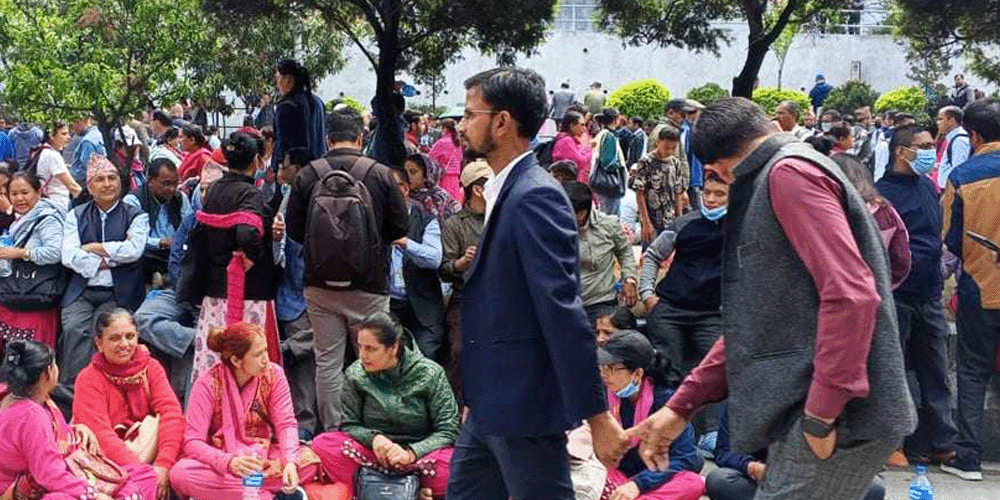 काठमाडौं । गत चैत २० गतेदेखि प्रदर्शन गरिरहेका शिक्षकहरूको आन्दोलन निरन्तर जारी रहेको छ । आन्दोलनरत शिक्षकहरू शनिवार (आज) सडकमै बसेर प्रदर्शन गरिरहेका छन् । बबरमहल–बानेश्वर सडक खण्डमा शिक्षकहरूले बसेरै प्रदर्शन गर्दा सवारी आवागमन प्रभावित भएको छ ।