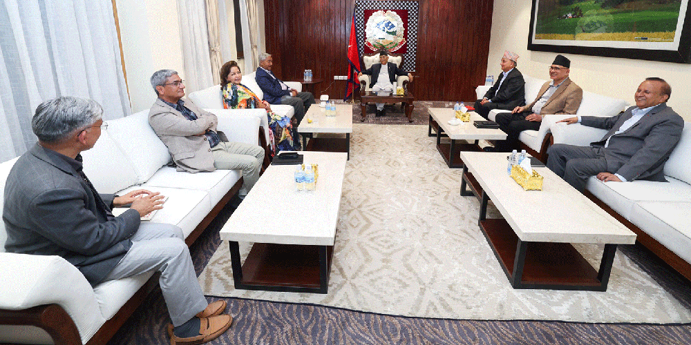 बैठकमा प्रधानमन्त्री केपी शर्मा ओली, कांग्रेस सभापति शेरबहादुर देउवासहित रमेश लेखक, आरजु देउवा तथा एमालेका ईश्वर पोखरेल, विष्णु पौडेल , शंकर पोखरल र विष्णु रिमाल सहभागी छन् ।