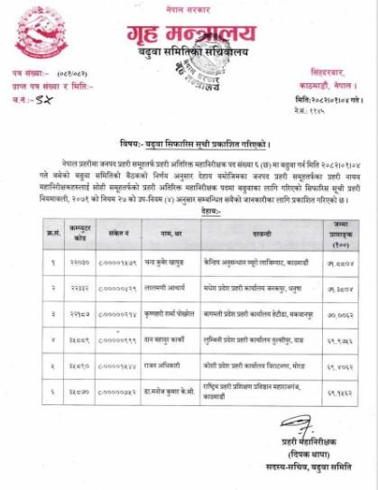 बिहीबार बसेको बढुवा समितिको बैठकले लालमणी आचार्य, कृष्णहरी शर्मा पोखरेल, दान बहादुर कार्की, राजन अधिकारी र डा। मनोज कुमार केसीलाई बढुवा सिफारिस गरेको हो।