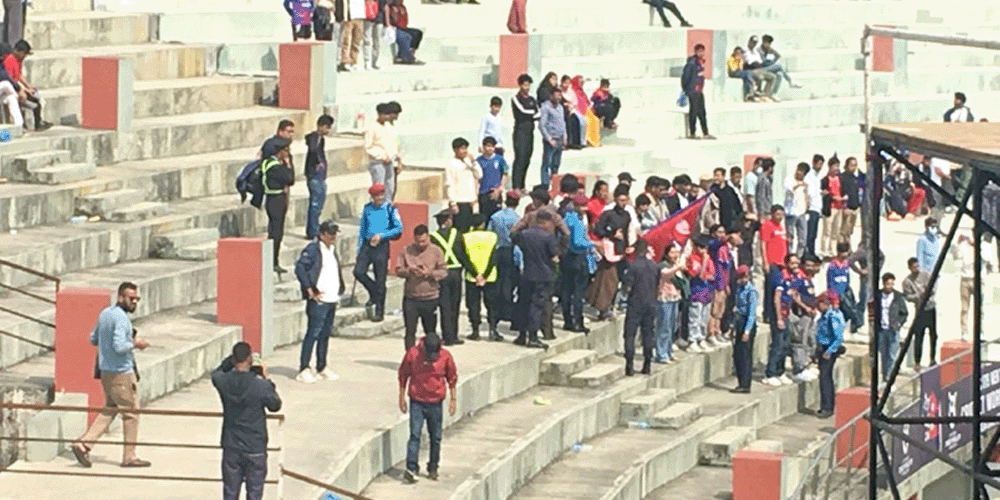 उनीहरूले समयमै मैदान तयार पार्न नसकेको र समुचित व्यवस्थापन गर्न नसकेको आरोप लगाए । स्थिति तनावपूर्ण बनेपछि प्रहरीले मैदानमा उपस्थित भएर समर्थकहरूलाई सम्झायो र बिस्तारै मैदानबाट बाहिर पठायो । यस खेल रद्द भएपछि नेपाल यू–१९ विश्वकप छनोटबाट बाहिरिएको छ ।
