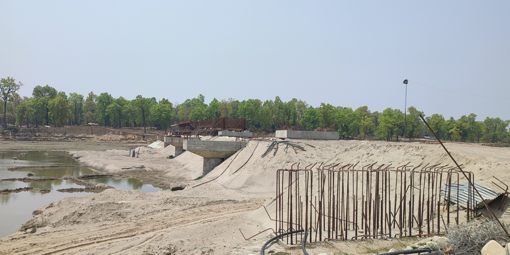 पुल निर्माणका लागि २०७२ सालमा सम्झौता भए पनि पुलको फाउन्डेसनमा समस्या आएकाले पुनः डिजाइन परिर्वतन गरेर अर्को स्थानमा पुल बनाउनुपर्ने हुँदा निर्माणमा ढिलाइ भएको सबइन्जिनियर रानाले बताए । उनले भने, ‘अहिले पुल निमार्णको काम तीव्रगतिमा भइरहेको छ असारसम्म सक्ने तयारी छ ।’ सम्झौताअनुसार पुल निमार्णको काम आगामी माघमा सक्नुपर्ने छ । पुल निर्माण कम्पनी लुम्बिनी राजेन्द्रकुमार श्रेष्ठ जेभीका इन्जिनियर किशोरराज पाण्डेयले पुलको ६० प्रतिशत काम सम्पन्न भइसकेको जानकारी दिए ।