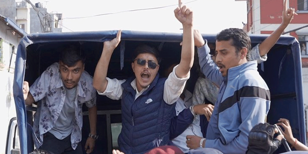 काठमाडौं । प्रधानमन्त्री निवास अगाडि प्रदर्शन गर्ने नेपाल विद्यार्थी सङ्घका नेताहरूलाई प्रहरीले पक्राउ गरेको छ । बालुवाटारस्थित प्रधानमन्त्री निवास अगाडि प्रदर्शन गर्ने क्रममा प्रहरीले ८ जनालाई नियन्त्रणमा लिएको हो ।