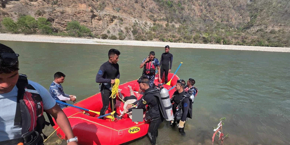 काठमाडौं । बैशाख १० गते सुर्खेत जिल्ला सिम्ता गाउँपालिका–४ भेरी नदिमा पौडी खेल्ने क्रममा बेपत्ता भएका ब्यक्तिको शव सशस्त्र प्रहरी बलको गोताखोरले ५० फिट गहिराईबाट निकालेको छ ।