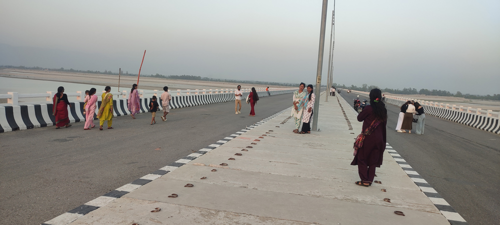 दोधारा चाँदनी । महेन्द्रनगरस्थित महाकाली नदीमा बनेको चार लेनको पक्की पुल पर्यटकको रोजाइमा परेको छ ।