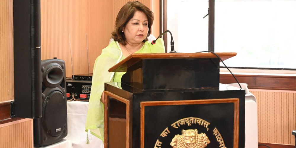 उनले नेपाल र भारतबीच गहिरो सम्बन्ध रहेको स्मरण गर्दै यो सम्बन्ध केवल कुटनीतिको विषयमात्र नभएर सदियौँदेखिको साझा इतिहास, संस्कृति र सहकार्य पनि रहेको बताइन् । उनले भनिन्, ‘हाम्रा खुला सिमानाहरू एकापसका विश्वासका प्रतीक हुन् र हाम्रा पारिवारिक सम्बन्धहरूले आपसमा नाता पनि गाँस्दछन् । हामी सधैँ खुसी या सङ्कटको समयमा एकसाथ उभिएका छौँ ।’
