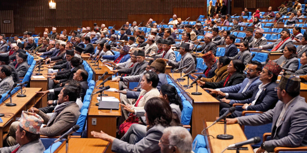काठमाडौं । बैङ्किङ कसुर तथा सजाय ९दोस्रो संशोधन० विधेयक, २०८० माथि राष्ट्रियसभाबाट भएको संशोधन प्रतिनिधिसभाले स्वीकृत गरेको छ । प्रतिनिधिसभाको आजको बैठकमा उपप्रधानमन्त्री एवं अर्थमन्त्री विष्णुप्रसाद पौडेले राखेको ‘बैङ्किङ कसुर तथा सजाय (दोस्रो संशोधन) विधेयक, २०८० माथि राष्ट्रियसभाबाट भएको संशोधनमाथि विचार गरियोस्’ भन्ने प्रस्ताव सर्वसम्मतिबाट स्वीकृत भएको हो ।