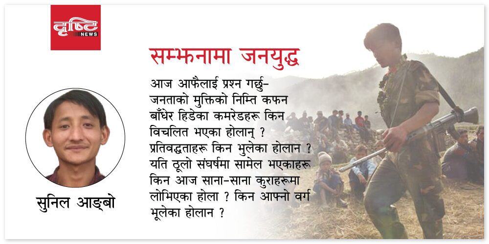 आज आफैलाई प्रश्न गर्छु– जनताको मुक्तिको निम्ति कफन बाँधेर हिडेका कमरेडहरु किन विचलित भएका होलान् ? प्रतिवद्धताहरु किन भुलेका होलान् ? यति ठूलो संघर्षमा सामेल भएकाहरु किन आज साना–साना कुराहरुमा लोभिएका होला ? किन आफ्नो वर्ग भूलेका होलान ?