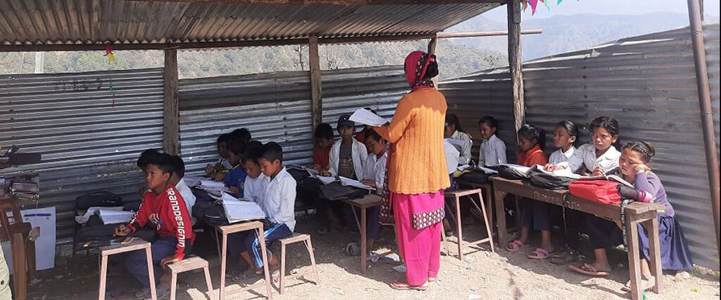 तुलसीपुर । वरिपरी टिनले बेरिएको छ । त्यही टिनले बेरिएको छाप्रोभित्र शिक्षकले विद्यार्थीलाई पढाइरहेका छन् । छाप्रोभित्र चैतको पारिलो घाम छिरेको छ । शिक्षिकाले सलले निधारमा परेको घाम छेक्दै ‘ह्वाईट बोर्ड’मा लेखिरहेकी हुन्छिन् ।