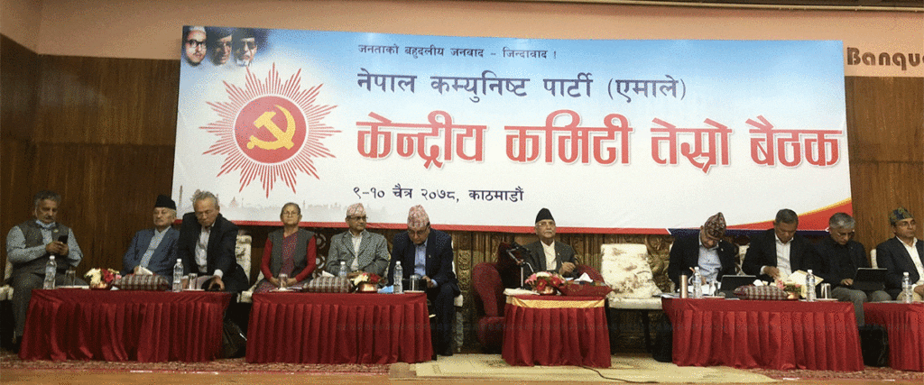 काठमाडौंको बबरमहलस्थित कार्की व्यांकेटमा बैठक जारी बैठकमा स्थानीय निर्वाचन केन्द्रीत विभिन्न ११ वटा एजेण्डामा छलफल हुँदैछ । साथै सातै प्रदेशका अध्यक्षको रिपोर्टिङ, अध्यक्ष ओलीबाट समसामयिक राजनीतिक प्रतिवेदन, विभागहरूलाई पूर्णता, स्थानीय तहका उम्मेदवार सिफारिसको मापदण्ड प्रक्रिया, स्थानीय निर्वाचनको घोषणापत्र, निर्वाचनमा पार्टी नेतृत्वको भूमिका, पार्टी स्थापना दिवसलगायत बैठकका एजेण्डा छन् ।