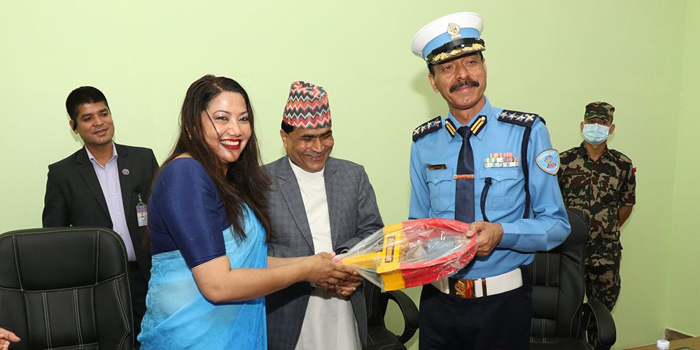 मंगलबार राजधानीमा ट्राफिक प्रहरीलाई प्राविधिक उपकरण हस्तान्तरण गर्दै मन्त्री झाँक्रीले ट्राफिक अनुशासन महत्वपूर्ण रहेको बताइन् ।