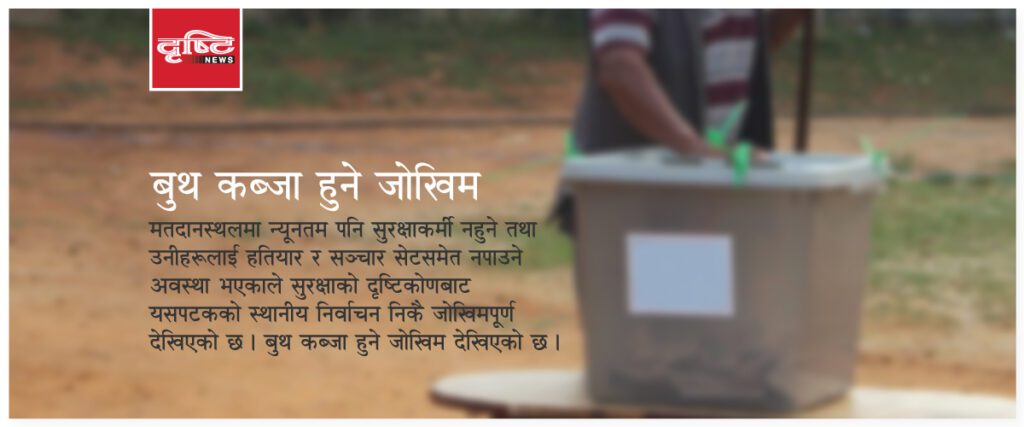 काठमाडौं । गृह र अर्थमन्त्रीको असक्षमताले आसन्न स्थानीय तह निर्वाचनमा बुथ कब्जा हुने जोखिम देखिएको छ । मतदानस्थलमा न्यूनतम पनि सुरक्षाकर्मी नहुने तथा उनीहरुलाई हतियार र सञ्चार सेटसमेत नपाउने अवस्था भएकाले सुरक्षाको दृष्टिकोणबाट यसपटकको स्थानीय निर्वाचन निकै जोखिमपूर्ण देखिएको छ । खर्च घटाउने नाममा सरकारले सुरक्षा निकायलाई स्रोत–साधन पनि उपलब्ध नगराउँदा यस्तो अवस्था आएको हो ।