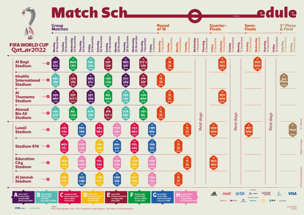 कतार र इक्वेडरबीचको खेल नोभेम्बर २१ मा अल बायत स्टेडियममा हुनेछ। दुई टोलीबीचको खेल नेपाली समय अनुसार ३ः ४५ बजे सुरु हुनेछ । पहिलो दिन थप तीन खेलहरू हुनेछन् । जसमा सेनेगलले नेदरल्यान्ड्ससँग नेपाली समयअनुसार १८ः४५ बजे प्रतिस्पर्धा गर्नेछन् ।