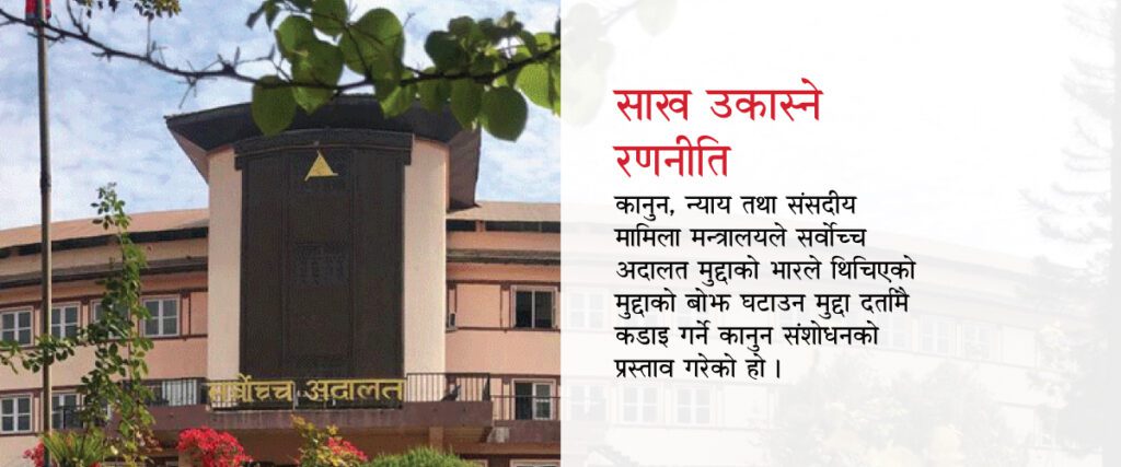 कानुन, न्याय तथा संसदीय मामिला मन्त्रालयले सर्वोच्च अदालत मुद्दाको भारले थिचिएको मुद्दाको बोझ घटाउन मुद्दा दर्तामै कडाइ गर्ने कानुन संशोधनको प्रस्ताव गरेको हो । सर्वोच्च अदालतमा आर्थिक वर्ष ०७७/७८ मा १५ हजार आठ सय १८ वटा पुनरावेदन दर्ता भएका छन् ।
