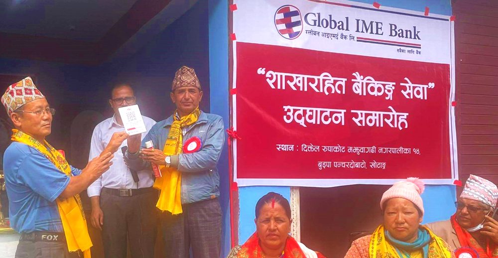 काठमाडौं । ग्लोबल आइएमई बैंकले खोटाङको दिक्तेल रुपाकोट मझुवागढी नगरपालिका वडा नं १४, बुइपामा नयाँ शाखारहित बैंकिङ सेवाको शुरुआत गरेको छ । नयाँ शाखारहित बैंकिङ सेवा सञ्चालनमा ल्याएसँगै बैंकका शाखारहित बैंकिङ सेवाको संख्या २७५ पुगेको छ ।