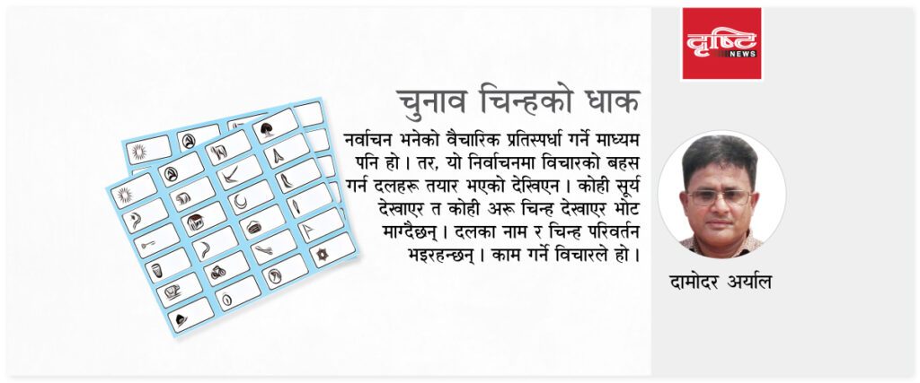 निर्वाचन भनेको वैचारिक प्रतिस्पर्धा गर्ने माध्यम पनि हो । तर, यो निर्वाचनमा विचारको बहस गर्न दलहरू तयार भएको देखिएन । कोही सूर्य देखाएर भोट माग्दैछन्, कोही अरु चिन्ह देखाएर । चुनाव चिन्हले विकास गर्ने हो कि मान्छेले गर्ने हो ? राजनीतिक दलहरूका नाम र चिन्हहरू परिवर्तन भइरहन्छन् ।