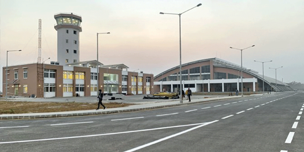 सन् २०१७ डिसेम्बरभित्र निर्माण सक्ने गरी सन् २०१५ को सुरूमा थालनी भएको विमानस्थलको काम बीचमा ठेकेदार कम्पनीको लापरवाहीले अवरोध भएको थियो । पछिल्लोपटक सन् २०२० को मार्चसम्म निर्माण सक्ने योजना रहे पनि कोभिड महामारीका कारण करिब पाँच वर्षपछि विमानस्थल व्यावसायिकरूपमा सञ्चालनमा आएको हो ।