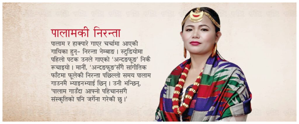 ‘पालाम’ लिम्बू समुदायको पहिचान हो । कुनै समय मेलापात, हाटबजारदेखि विवाह वा हरेक जमघटमा अनिवार्य गाइने पालाम युट्युबमा सीमित छ । यसैबेला निरन्ता नेम्बाङ ‘पालाम’ गाएरै चर्चामा आएका छन् ।