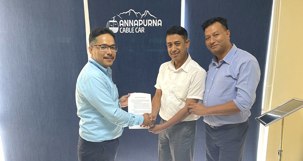 काठमाडौं । पोखरामा आन्तरिक पर्यटनको विस्तारमा सेवा पुर्याउने र ग्राहकलाई विशेष छुट प्रदान गर्ने उद्देश्यले माछापुच्छ्रे बैंकले अन्नपूर्ण केबुलकार चढ्ने आफ्ना ग्राहकलाई १० प्रतिशत छुटसम्बन्धी सम्झौता गरेको छ । उक्त सम्झौतापत्रमा अन्नपुर्ण केबुलकार प्रालिका महाप्रबन्धक दिनेश पौडेल तथा माछापुच्छ्रे बैंकका शाखा प्रमुख आलोकमान श्रेष्ठले हस्ताक्षर गरेका छन् ।
