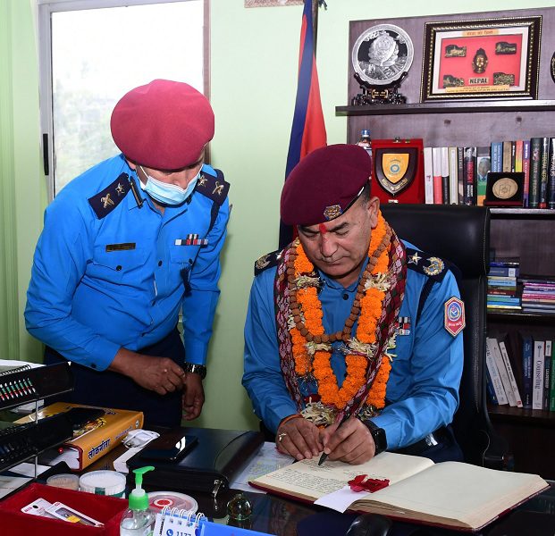 काठमाडौं । नेपाल प्रहरीका पाँच एआइजीले बिहीबार पदस्थापन भएको कार्यालयका पदभार ग्रहण गरेका छन् । जसनुसार काठमाडौं उपत्यका प्रहरी कार्यालयमा एआइजी रबिन्द्रबहादुर धानुकले पदभार ग्रहण गरेका छन् । यसअघि प्रशासन विभागमा रहेका धानुकको उपत्यकाको सुरक्षा हेर्र्ने गरी सरुवा भएको हो ।