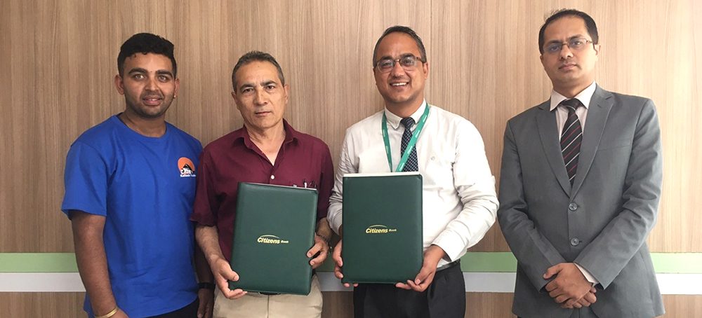 काठमाडौं । सिटिजन्स बैंक इन्टरनेसनल लिमिटेड र नगरकोटको होटेल हिमालयन भिल्ला प्रालिबीच सिटिजन्स बैंकका कार्डवाहक ग्राहकलाई विशेष छुट दिने समझदारी भएको छ । बैंकका कार्डवाहक ग्राहकले उक्त होटेलमा लिएको सेवा–सुविधाको शुल्कमा ५० प्रतिशतसम्म छुट पाउने समझदारी भएको हो ।
