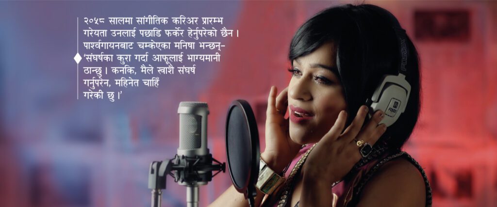 विराटनगरकी मनिषा आफूलाई ‘भाग्यमानी गायिका’ ठान्छन् । २०५८ सालमा सांगीतिक करिअर प्रारम्भ गरेयता उनलाई पछाडि फर्केर हेर्नुपरेको छैन । पाश्र्वगायनबाट चम्केएका मनिषा भन्छन्– ‘संघर्षका कुरा गर्दा आफूलाई भाग्यमानी ठान्छु । किनकि, मैले खाशै संघर्ष गर्नुपरेन, मिहिनेत चाहिँ गरेकी छु ।’