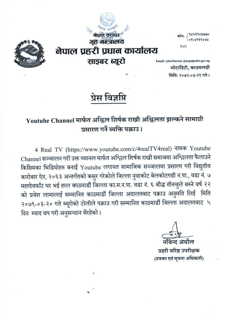 युट्वुठ च्यानलमा अश्लिल शीर्षक राखी समाजमा अश्लिलता फैलाउने किसिमका भिडियोहरु बनाई युट्युव र सामाजिक सञ्चालमा रखेको भन्दै नेपाल प्रहरीको साइबर व्युरोले युट्युवर लामालाई पक्राउ गरेको हो ।