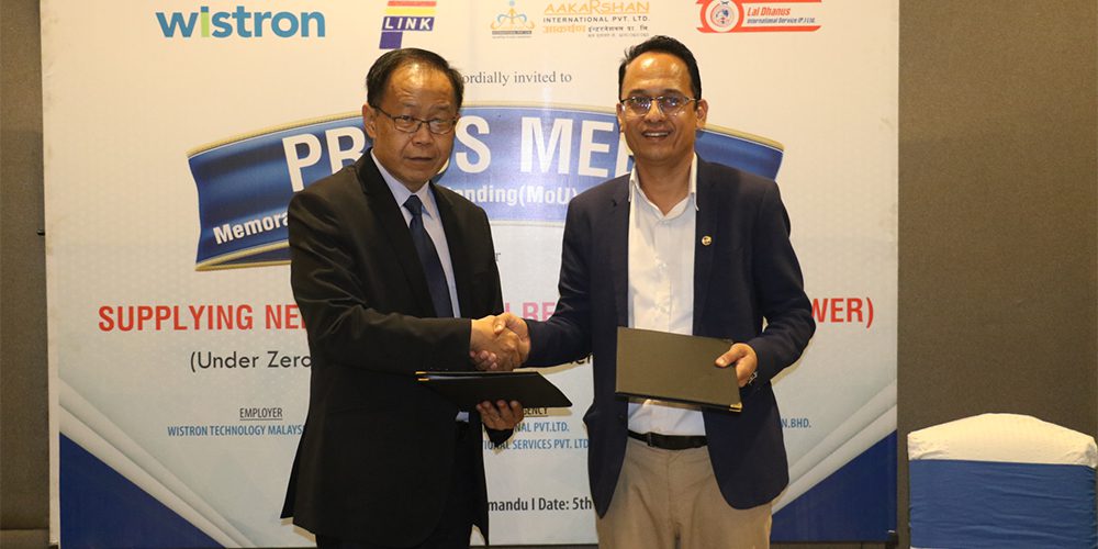 काठमाडौं । मलेसियामा रहेको विश्वकै ठूलो आइटी कम्पनीले शून्य लागतमा नेपाली श्रमिक लैजाने भएको छ । आज यहाँ आयोजित एक कार्यक्रममा मलेसियाको विर्स्टन टेक्नोलोजी र नेपालस्थित मेनपावर कम्पनी आकर्षण इन्टरनेशनल र लालधनुष इन्टरनेशनलबीच द्विपक्षीय सम्झौता भएको छ ।