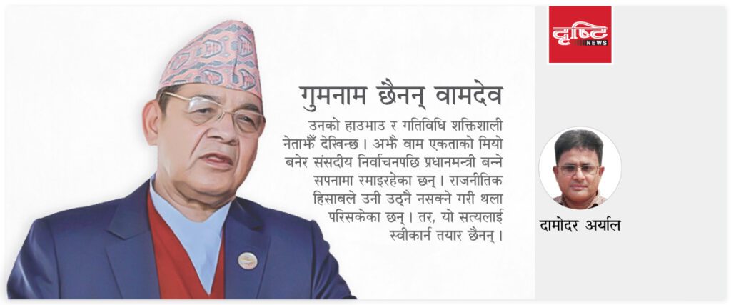 यसबाट वामदेवलाई केही फरक परेको छैन । कम्तीमा उनी चर्चामा त छन् । फेरि पनि वामदेवलाई राम्रैसँग थाहा छ, ‘नाम कमाना, बदनाम कमाना, लेकिन गुमनाम मत होना ।’