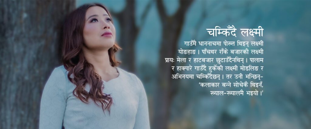 ‘कलाकार बन्छु भन्ने सोचेकै थिइन’ लक्ष्मीले भनिन्, ‘ख्यालख्यालमै कलाकार भइयो ।’ लक्ष्मीले केही नेपाली फिल्ममा पनि अभिनय गरिसकेकी छन् । विशेषगरी लिम्बू संस्कृतिमा आधारित फिल्म र भिडियोमा अभिनय गर्दै आएकी मोडल तथा अभिनेत्री लक्ष्मी योङहाङसँग एमपी सुब्बाको जम्काभेट :