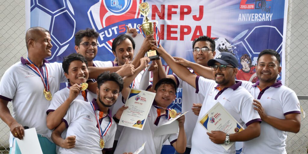 काठमाडौं । एनएफपीजे फुट्सल प्रतियोगीतको उपाधी हाम्रो फुटसल पत्रकार टिमले जितेको छ । राष्ट्रिय फोटो पत्रकार समूह (एनएफपीजे) को २५औं बार्षिक उपलक्ष्यमा आयोजना गरिएको फुटसल प्रतियोगितको उपाधि हाम्रो फुट्सल पत्रकार टिमले जितेको हो ।