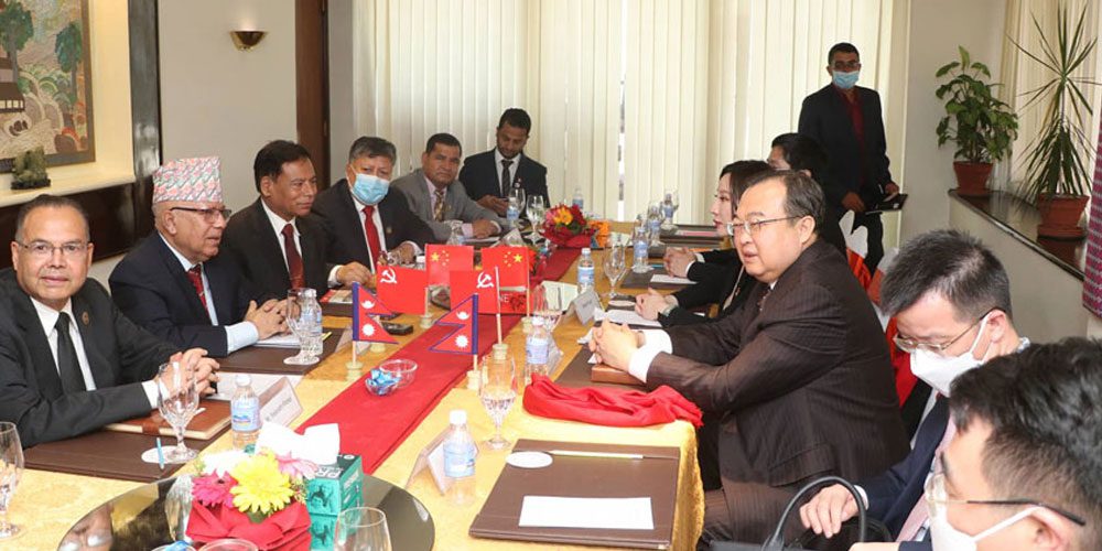७. नेकपा एमालेका अध्यक्ष केपी शर्मा ओली र सीसीपीका विदेश विभाग प्रमुख लिउबीच भेटवार्ता, नेपालको क्षेत्रीय र अन्तर्राष्ट्रिय राजनीतिमा आएको बदलाबबारे कुराकानी, मित्रवत् सम्बन्धलाई अझ मजबुद बनाउन चाहन्छ भएको लिउको भनाइ, नेपालको आन्तरिक मामिलामा हस्तक्षेप नगर्ने प्रतिबद्धता, चीनसँग सम्बन्ध निरन्तर रहने ओलीको अभिव्यक्ति ।