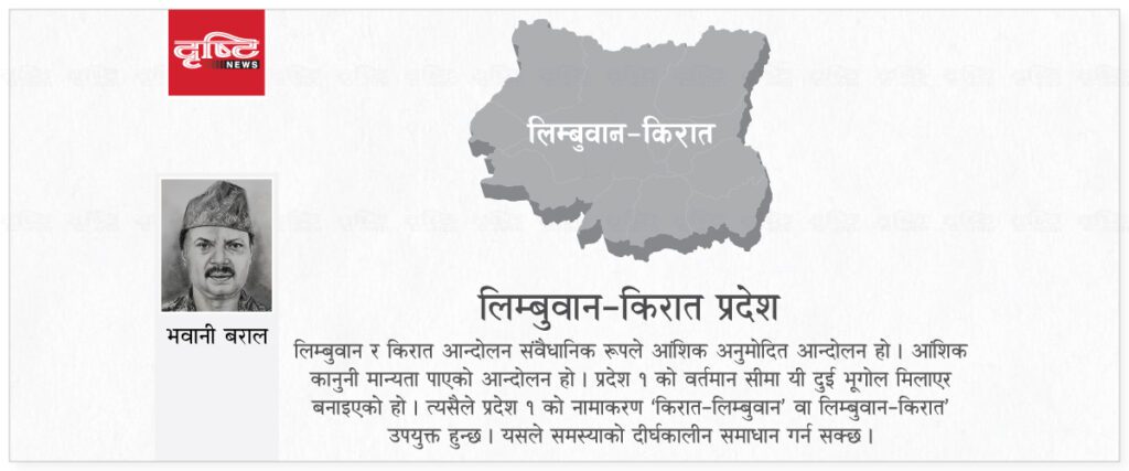 ०६५ को राज्य पुनःसंरचना तथा राज्यशक्तिको बाँडफाँड समितिले अनुमोदन गरेको विषय थियो । र, त्यसपछाडि आयोग बन्यो । राज्य पुनःसंरचना तथा राज्यशक्तिको बाँडफाँड सुझाव आयोगले पनि ११ प्रदेशमा दुई वटै आन्दोलनलाई अनुमोदन गर्याे । र, संरचनागत ढंगले लिम्बुवान र किरात भनेर निर्माण गर्याे । जुन कुरो अहिले प्रदेश नं. १ मा खुलेको छ ।