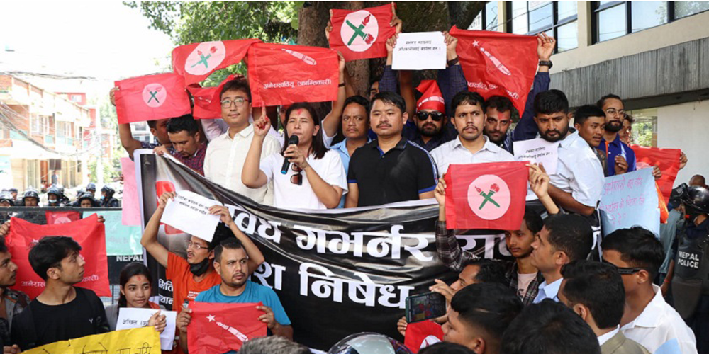 गभर्नर अधिकारीविरुद्ध प्रदर्शनका क्रममा प्रहरीले विद्यार्थीमाथि हस्तक्षेप गर्दै धरपकड गरेको थियो । नेकपा एमालेको अर्थ विभागमा रहेको भन्दै गभर्नर अधिकारीको विरोध हुँदै आएको छ ।