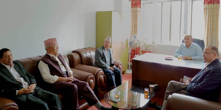 काठमाडौं । तत्कालीन नेपाल कम्युनिस्ट पार्टी (नेकपा) को सचिवालयमा रहेका पाँच नेताहरुबीच पार्टी एकताबारे छलफल भएको छ । बैठकपछि नेकपा माओवादी केन्द्रका अध्यक्ष पुष्पकमल दाहाल ‘प्रचण्ड’ले विचार मिल्नेहरुसँगको एकताका विषयमा छलफल भएको बताए ।