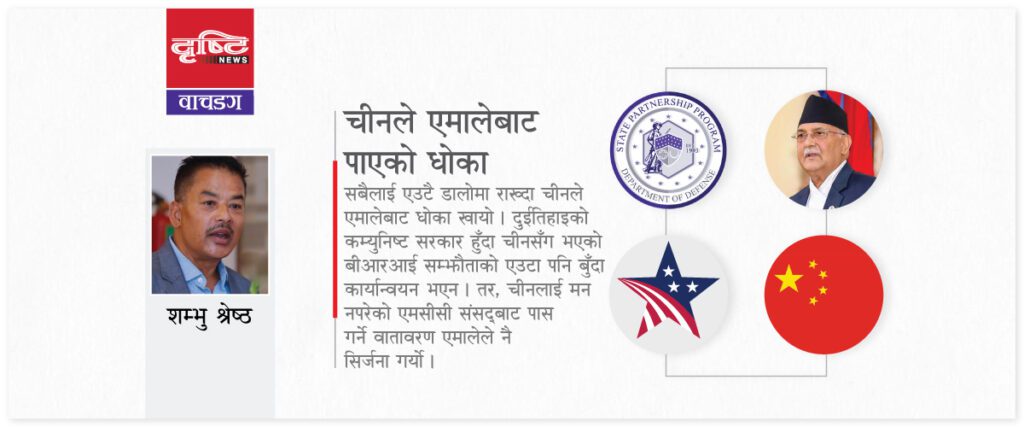 यदि, नेकपाको दुईतिहाइका प्रधानमन्त्री ओलीले एमसीसी संसद्मा पेश नगरेको भए छिमेकी चीनको ज्वरो बढ्ने थिएन । नेपालका कम्युनिष्ट पार्टीहरुसँग चिनियाँ कम्युनिष्ट पार्टीले सम्बन्ध बढाउन चाहेका बेला चीनले कुन सक्कली कम्युनिष्ट पार्टी हो, कुन नक्कली कम्युनिष्ट पार्टी हो भन्ने कुरा बुझ्नुपर्छ ।