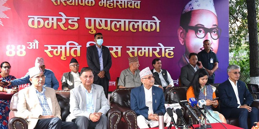 शनिबार पुष्पलालको ४४औं स्मृति दिवसका आयोजित कार्यक्रममा बोल्दै अध्यक्ष ओलीले भने, ‘पुष्पलालले गरेको संगठन विभिन्न उत्तरचढाव हुँदै गंगालालको विरासत, बलिदान, प्रजा परिषदको परिणाम, प्रजा परिषदले देखाएको चेतनाको झिल्को, १९९८ सालमा गठन गरिएको प्रजातान्त्रिक संघको गठन हुँदै आज देशको सवैभन्दा संगठित, सचेत, विस्तृत, परिवर्तनकारी र सवैभन्दा सवल शक्ति यो पार्टी नेकपा एमाले भएको छ ।’