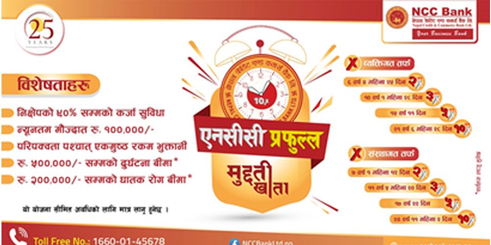 नेपाल क्रेडिट एण्ड कमर्स बैकको ‘एनसीसी प्रफुल्ल मुद्दती खाता योजना’