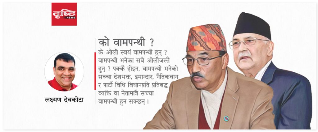 कोही सच्चा वामपन्थी भए ऊसँग सहकार्य गरेर जान सकिने आशयको भनाइ एमाले अध्यक्ष खड्गप्रसाद ओलीले राखेपछि मेरा मनमा प्रश्नहरुको ताँती लागेर आयो । ओलीले वास्तवमा बडो गम्भीर प्रश्न गरे, के यो मुलुकमा कोही सच्चा वामपन्थी छ त ?