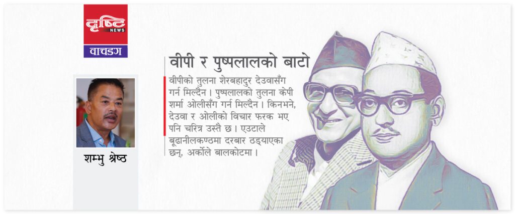 वीपीको तुलना शेरबहादुर देउवासँग गर्न मिल्दैन । पुष्पलालको तुलना केपी शर्मा ओलीसँग गर्न मिल्दैन । किनभने, देउवा र ओलीको विचार फरक भए पनि चरित्र उस्तै छ । एउटाले बूढानीलकण्ठमा दरबार ठड्याएका छन्, अर्कोले बालकोटमा ।