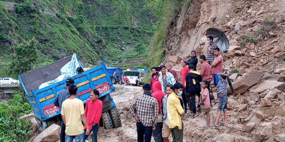 सडकमा गाडी थन्किएका छन् । लामो समयदेखि आफुहरु बीच बाटोमै अलपत्र परेको ट्रक चालक महावीर खड्काले बताए । ‘म बाजुराका लागि सामान लिएर जादैँ थिए । लाफा सडकखण्ड आइतबारदेखि बन्द छ’, उनले भने । हिले सडकमा ढुङ्गा–माटो हाल्दै मालवाहक गाडी पार गराउन हम्मे–हम्मे भएको चालक खड्का बताउछन् ।