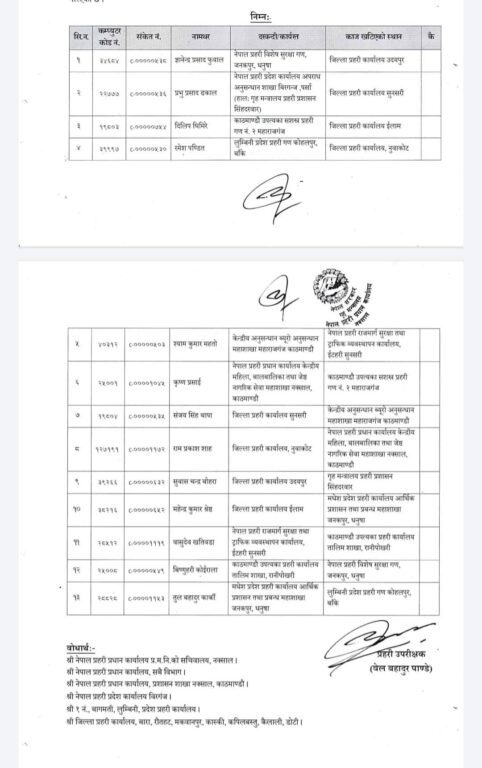सरुवाअनुसार सुनसरीमा प्रभु ढकाललाई पठाइएको छ । त्यस्तै, उदयपुरमा ज्ञानेन्द्र फुयाल, इलामम दिलिप घिमिरे र नुवाकोटमा रमेश पण्डितको सरुवा भएको छ । यसअघि घिमिरेको डोटी सरुवा भएकोमा त्यहाँ जान अस्वीकार गरेपछि उनलाई इलाम पठाइएको छ ।