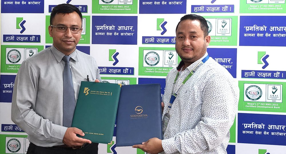 काठमाडौं । कामना सेवा विकास बैंक र सिद्धार्थ बिजनेस ग्रुप अफ हस्पिटालिटीबीच सम्झौता सम्पन्न भएको छ ।